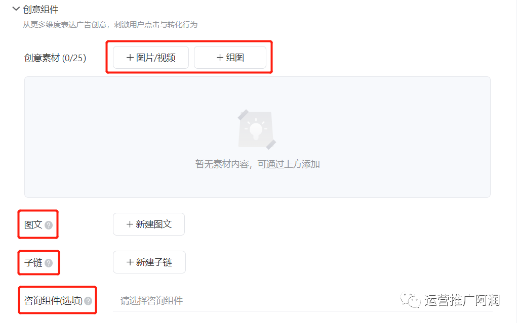 2)除了关键词通配符外,创意组件也是非常重要的工具QQ浏览器搜索还可组合使用各种创意组件(图片、图文、长短子链等),有利于展示更多广告样式,得到更好的广告创意效果比如在“图文”组件中新建了3张图片并搭配3条文案,创意上线后可以同时展示3张图文信息,能更丰富地宣传卖点及增加广告点击入口。