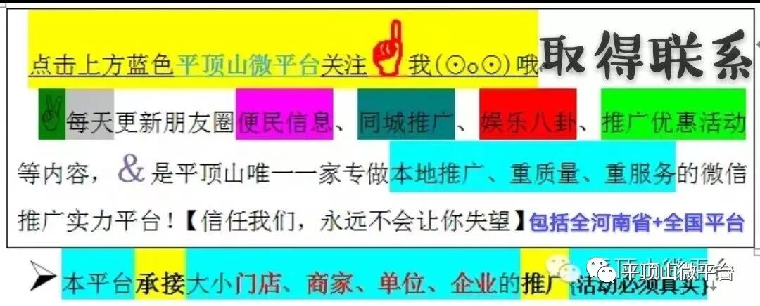获取更多资讯,更多精彩内容,请点击下方标题进入查看:平顶山微平台便民广告服务第一大专业平台!全国各地专业微信推广广告实力平台二览图!@平顶山人!关于主城区部分区域实施临时管控的通告!关于进一步强化聚集性活动管控工作的通告!关于加强来平返平人员健康管理的通告!