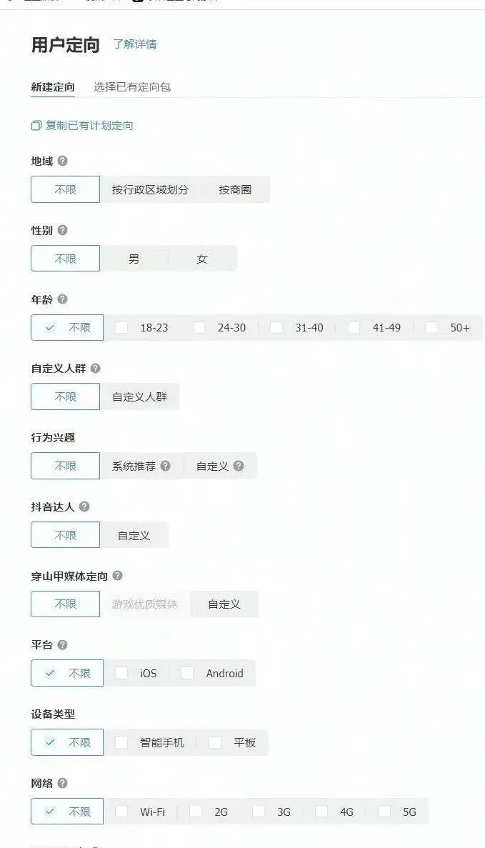 设置广告投放定向,预算,出价