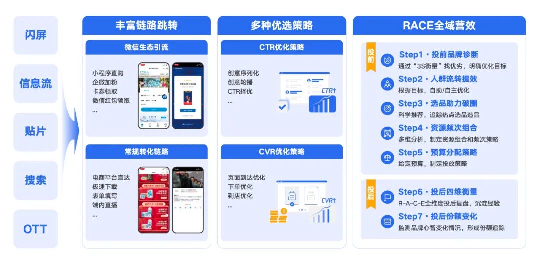 而当消费者有转化需求时,既可以在腾讯域内借小程序即时完成交易,也可以使用引流电商去域外实现购买此外,腾讯还提供了互选达人种草、广告引流线下、广告表单一键加企微、搜一搜品牌专区、视频号直播等更多链路承接消费者不同需求。