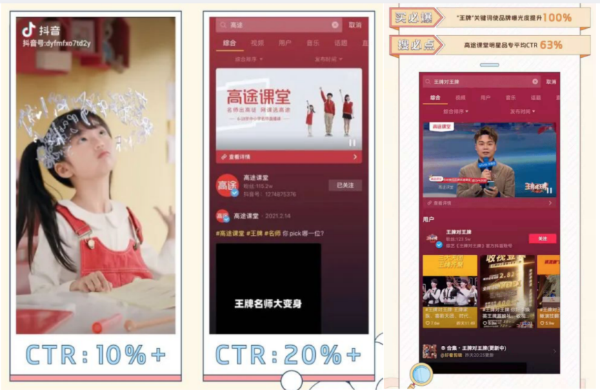 借势综艺热度,高途课堂的品牌曝光度提升了100%,明星品专的平均CTR(点击率)也达到了63%。