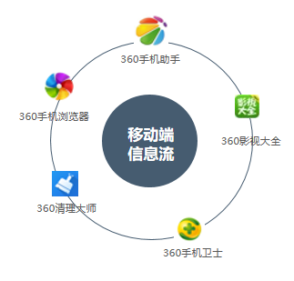 工具类信息流体量可观一个典型的例子就是360的工具矩阵(360手机卫士、360手机助手、360浏览器等)360信息流打通了360全线优质产品,覆盖用户碎片化时间和多闲暇场景,通过360行为链大数据定向,将广告在信息导航、新闻阅读、内容浏览等信息流中展现。