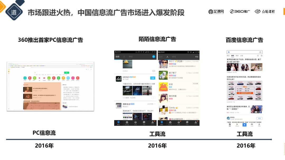 点睛课程第1期,360推广联合艾奇在线,由360PC信息流广告产品负责人王恒,用7年的行业运营推广实战经验,带我们摸清信息流广告的由来、现状、出路。