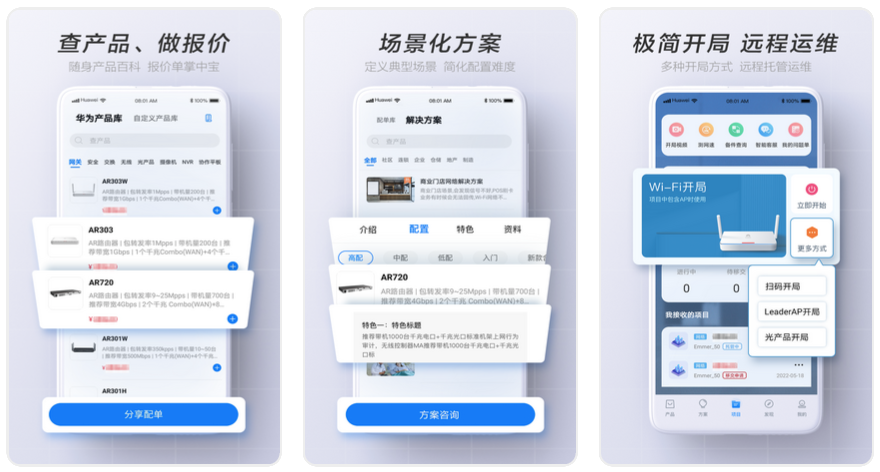 华为亿商APP是一款专门为工程商/安装商伙伴打造的一站式平台聚合了工程商所需的设备开局、远程运维、产品资讯、报价工具、场景化方案、营销物料等功能/内容,助力海量工程商/安装商拓展小微企业市场1. 产品随身携带的产品百科,一键获取产品信息及资料;贴心懂你的效率神器,快速查询/添加产品,一键完成报价单生成,支持报价单内容自定义。