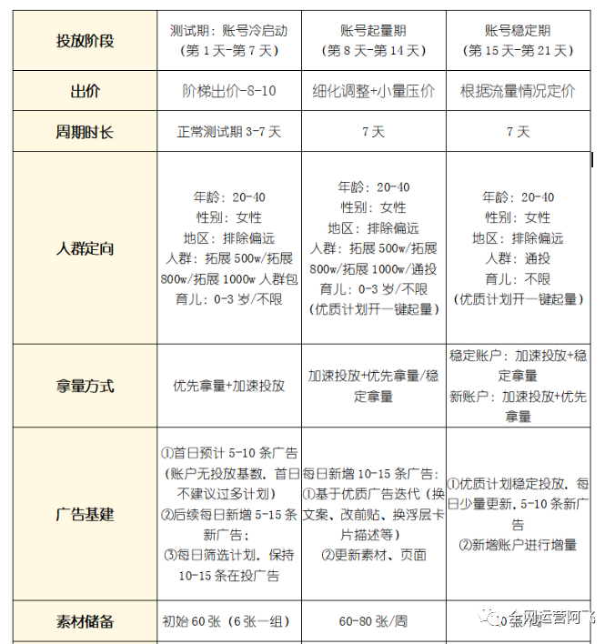 ②页面:原生文章(类似文章阅读环境,拉进距离)+人群圈定(90后妈妈)+购物截图(真实性)+步骤引导(行动指令)5. 素材准备根据画像人群类目偏好,以及通过竞品素材类型产出各个样式低价外层素材6. 制定投放计划。