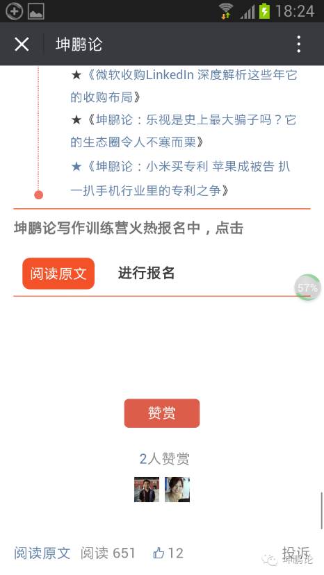 》★《坤鹏论:乐视是史上最大骗子吗?它的生态圈令人不寒而栗》★《坤鹏论:小米买专利 苹果成被告 扒一扒手机行业里的专利之争》坤鹏论写作训练营火热报名中,点击 阅读原文 进行报名