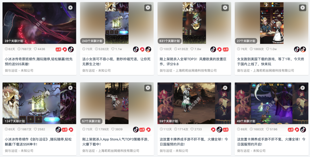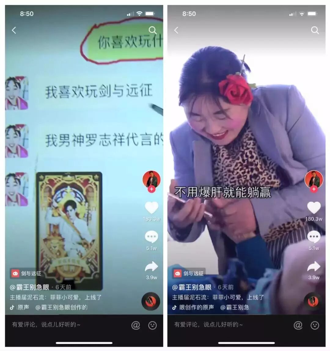 第二步,爆量,这也是预算最庞大的出口首先,大预算产品一般都会选一个主攻的投放平台例如《剑与远征》的首选是抖音,这决定了它的素材风格、代言人和KOL方向……比如沙雕气质的素材就很符合抖音的娱乐氛围