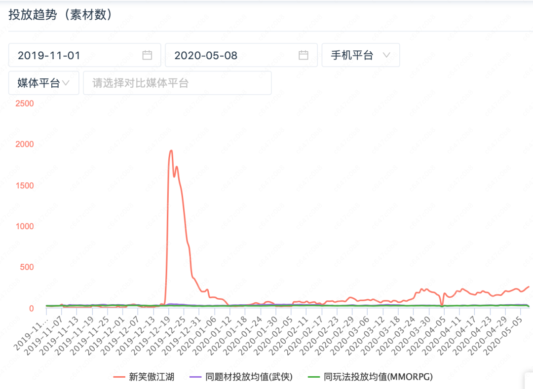 再说投放节奏和素材选择大预算产品一般会在产品上线首日全量投放,并辅以KOL营销、达人营销等一系列的品牌曝光,形成最高的声量例如《新笑傲江湖》的投放曲线就有明显的波峰,爆量时间大概在3-5天有买量从业者分析,它的首日投放金额可能超过5000万。