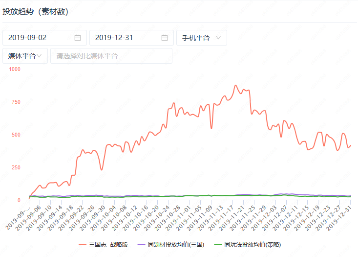 《三国志·战略版》在第一个爆量阶段的投放曲线《三国志·战略版》在爆量阶段的素材也略有不同由于它的目标用户是「脑男人」,即有过大量游戏阅历,社会地位相对较高的老炮,它没有强调十连抽、送礼包,而是试图结合IP,让三国和自己的品牌标签融合在一起,素材也以高晓松讲解配合3D动画为主。