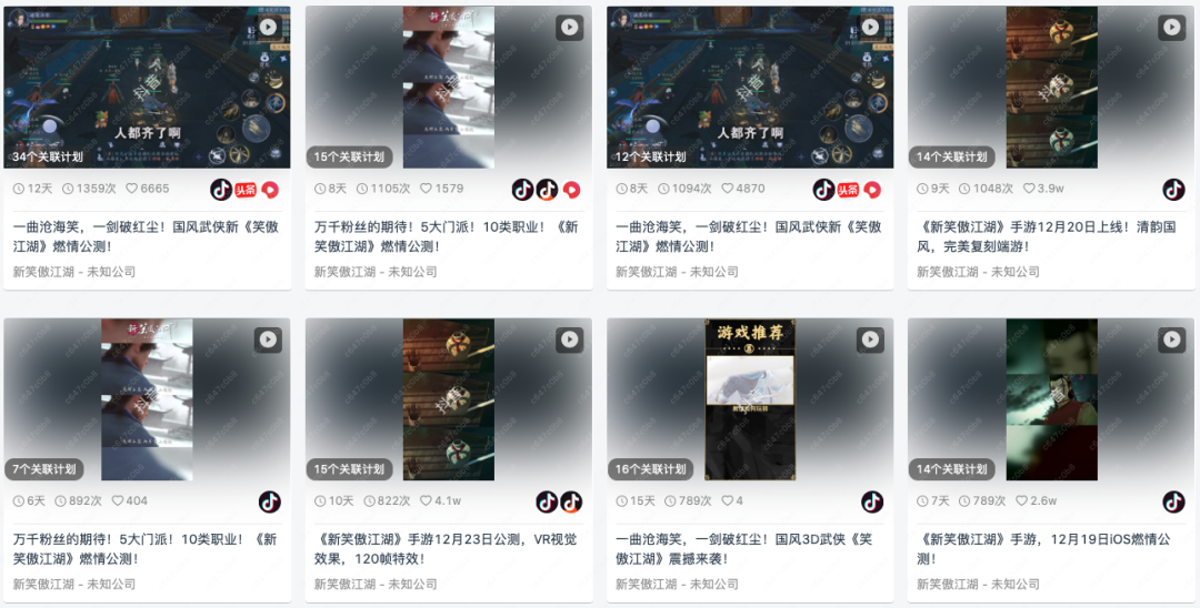 就投放素材来看,它的文案没有过多强调卖点细节,而是围绕「新笑傲江湖」几个字,烘托出一种大势感。